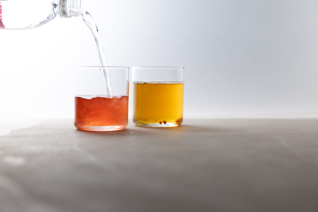 ・水 + 葛の花・炭酸水 + 葛の花・ウーロン茶 + 葛の花